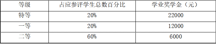 注:一般情况下,硕士研究生学业奖学金特等、一等、二等的占比分别为20%、20%、60%,在总额控制条件下,根据实际情况适当调整有关比例。
