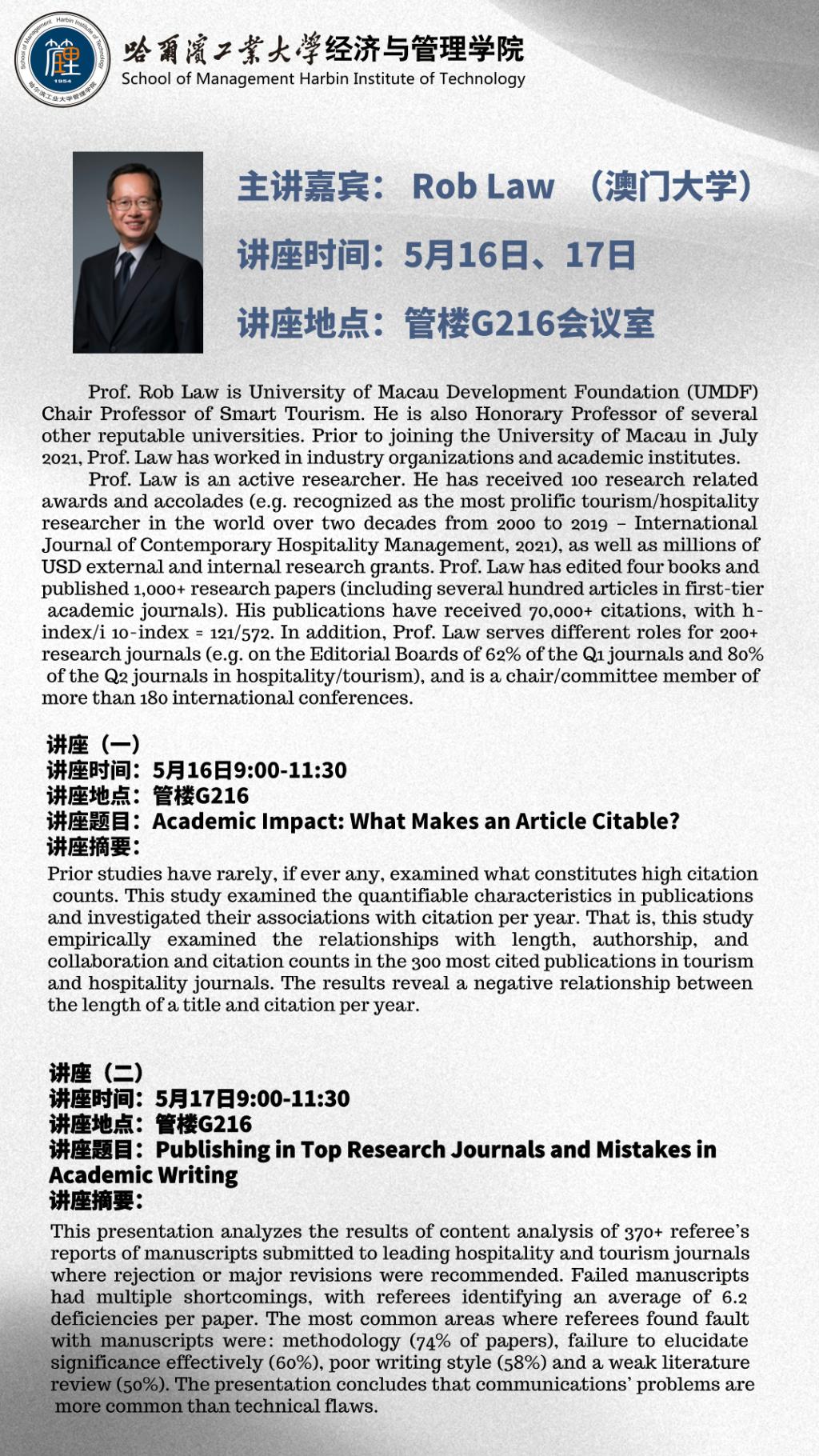 【讲座通知】5月16、17日澳门大学Rob Law教授讲座通知