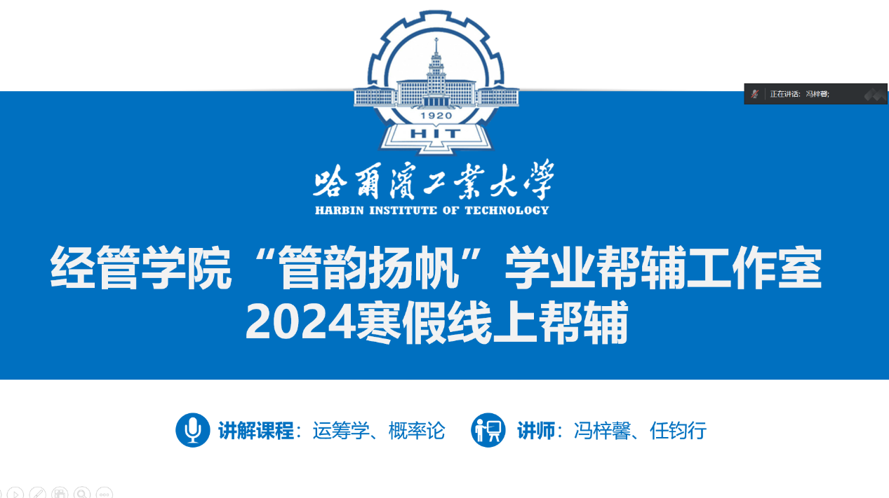 工作室在2月2日至3月1日期间开展了为期21天的“学习打卡计划”活动,同学们积极参与,对每天的学习内容进行记录打卡。另外,工作室组织进行了课程《概率论与数理统计》、《运筹学》的学业帮辅活动,创建答疑交流群,开展知识点复习课来巩固学习质量。“管韵扬帆”讲师团的志愿者们事先收集重难点问题,精心准备讲解内容,对重要知识点和高频考点进行了针对性讲解与系统梳理,同时还结合个人学习思路,通过分享学习心得和复习笔记来帮助同学们更好地制定假期复习计划。