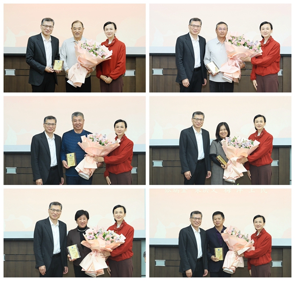 师承宣讲团”成员颁发聘书。荣休教职工代表李一军、艾文国、张瑞金、梅萍深情地回忆了和同事们并肩奋斗的难忘岁月,表达了对学校的感恩与难舍之情和对学校未来发展的美好祝愿。