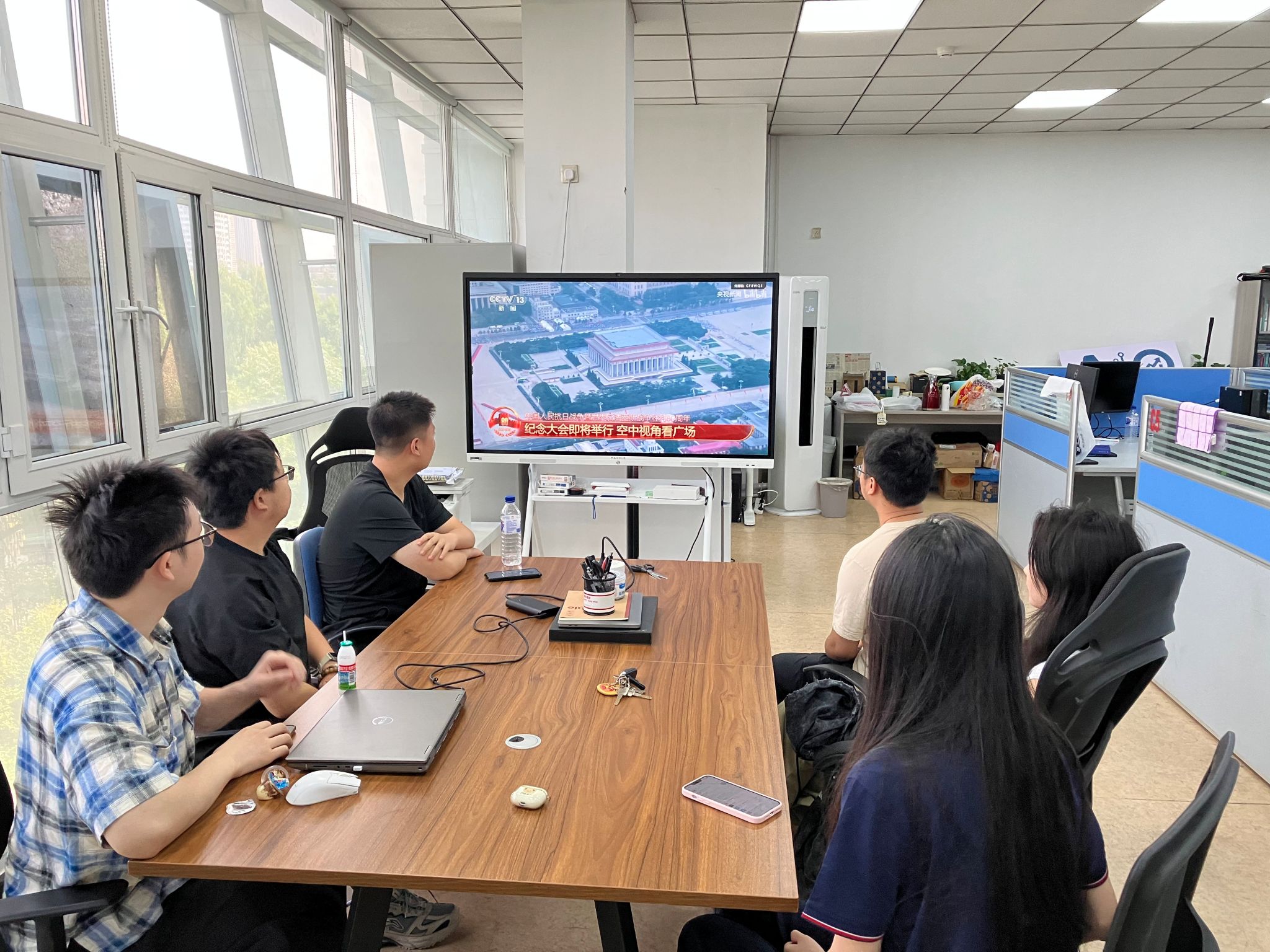 组织师生共同收看纪念中国人民抗日战争暨世界反法西斯战争胜利80周年阅兵仪式实况直播,现场气氛庄重热烈。本次阅兵全面展现了中国国防现代化的辉煌成就与人民军队的昂扬风貌。师生以支部为单位,通过直播共同见证了这一庄严时刻,深刻感受到国家强盛与民族复兴的磅礴力量。