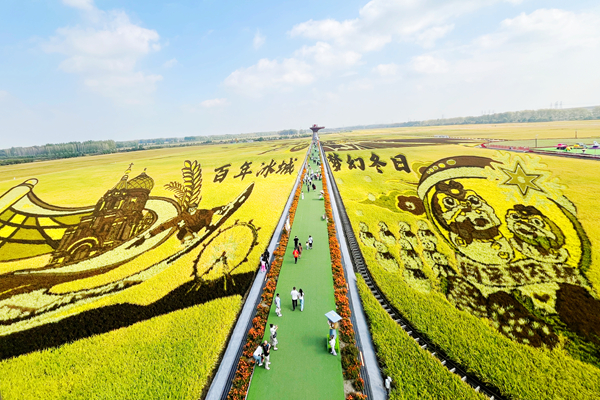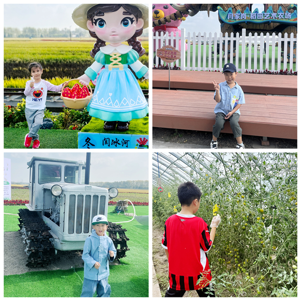 作为集现代农业观光、传统文化展示于一体的特色农场,北大荒闫家岗稻田艺术农场为此次活动提供了优质的体验场景。在稻田画展区,由不同色系水稻培育而成的主题画作极具视觉冲击力,既有展现哈尔滨地域文化的“冰城风情”图案,也有传承中华优秀传统文化的“神话故事”系列画作。孩子们在家长的讲解下,了解了稻田种植和稻田画培育原理,近距离感受了现代农业技术与艺术创作的融合魅力。参与家庭乘坐田园小火车,沿稻田专线缓慢行驶,沉浸式感受黑土地的秋日风光。秋风拂过,广袤的稻田涌起层层绿浪,卷起阵阵稻香,孩子们欢快的笑声在田野间回荡。