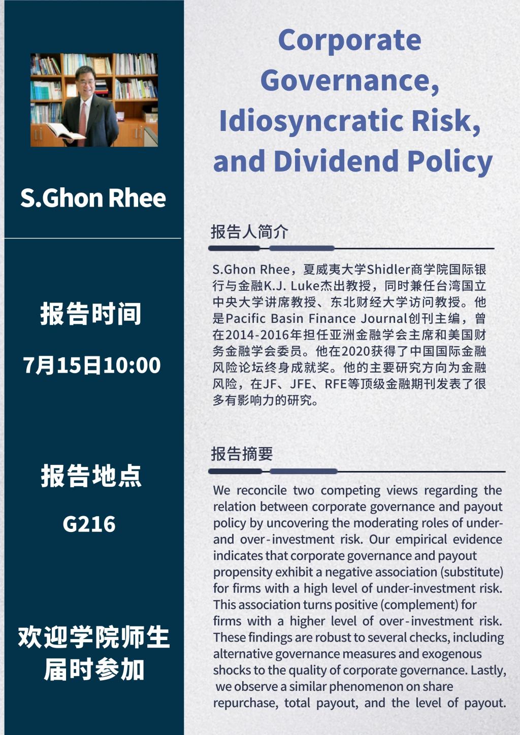 报告题目:Corporate Governance, Idiosyncratic Risk, and Dividend Policy