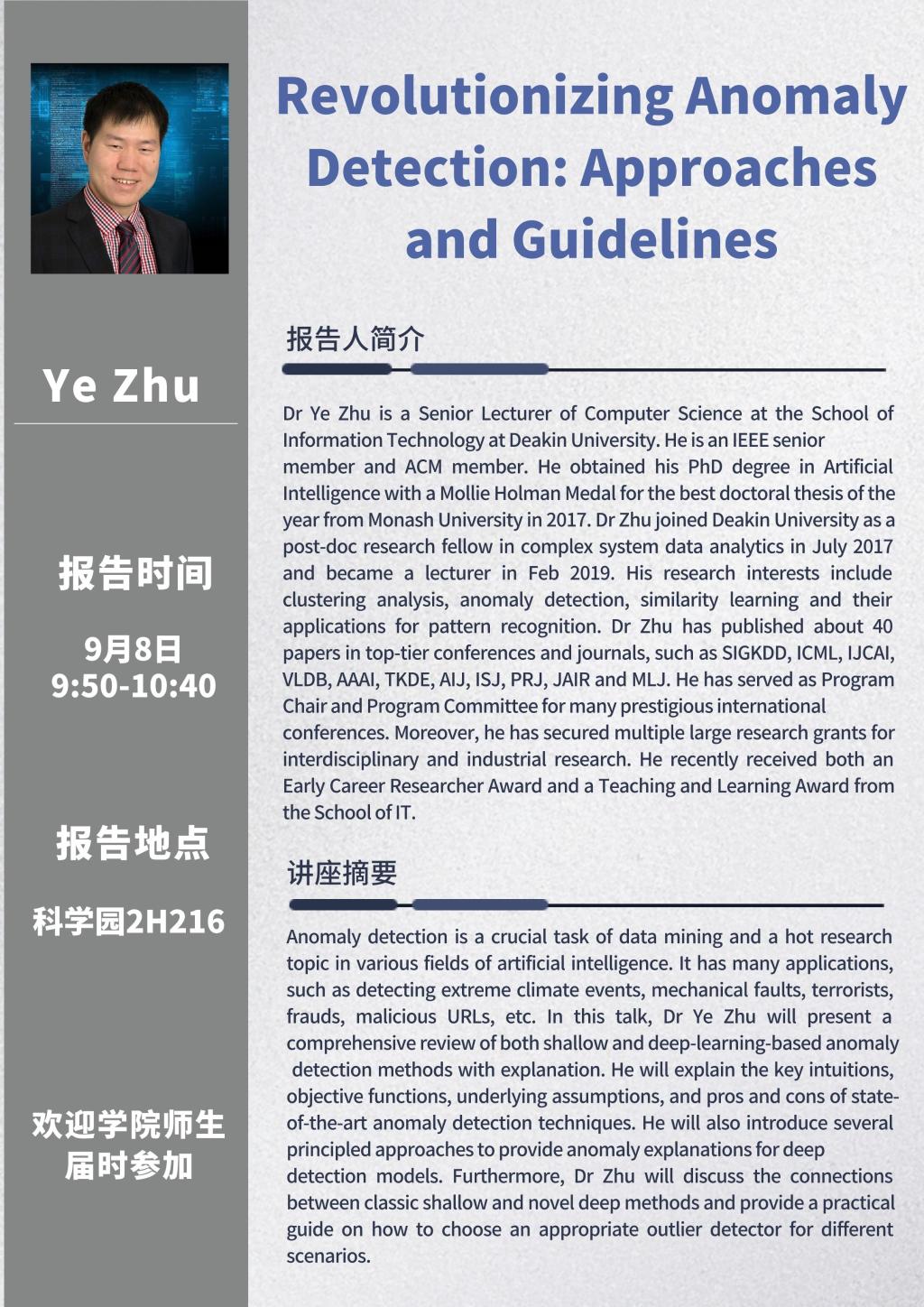 讲座题目:Revolutionizing Anomaly Detection: Approaches and Guidelines