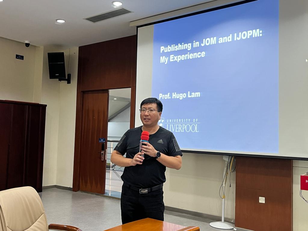 Hugo Lam教授首先介绍了自己近年来在JOM及IJOPM两本期刊上发表多篇文章的经历,之后对两本期刊各自特点进行了介绍。通过对2018-2022年两本期刊刊发文章整体情况进行详细分析,展示了两本期刊刊发文章的作者分布、单位分布、文章主题选择等多方面情况,让与会师生对两本期刊有了进一步的认识。随后对两本期刊的评审过程、评审周期进行了细致说明,对师生发表文章过程中的合作者选择、文章表述方式等给出了自己的建议。报告结束后,师生就文章撰写中数据收集与选择等问题展开了进一步讨论。