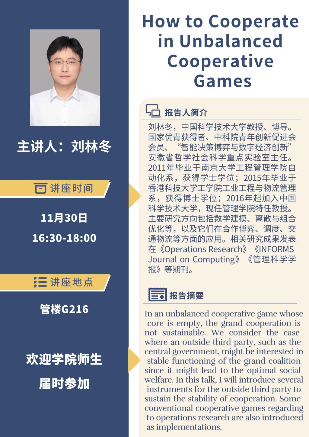 报告题目:How to Cooperate in Unbalanced Cooperative Games