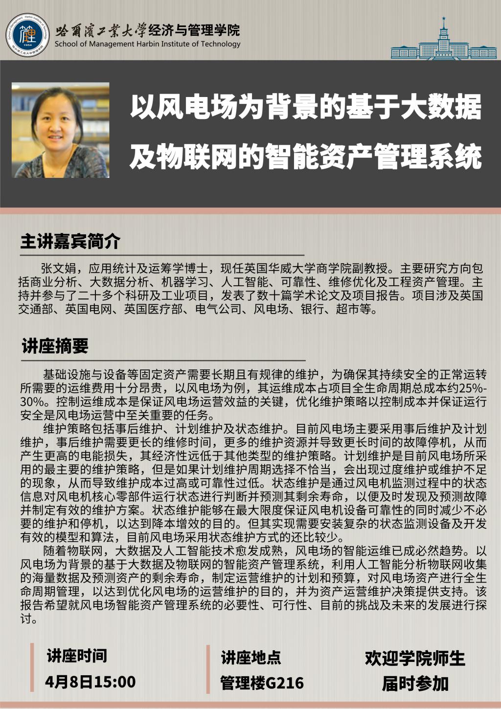 讲座主题:以风电场为背景的基于大数据及物联网的智能资产管理系统