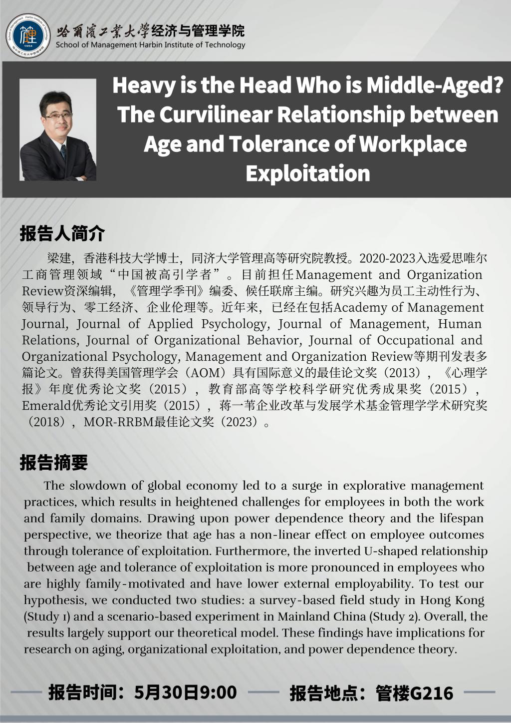 报告题目:Heavy is the Head Who is Middle-Aged? The Curvilinear Relationship between Age and Tolerance of Workplace Exploitation