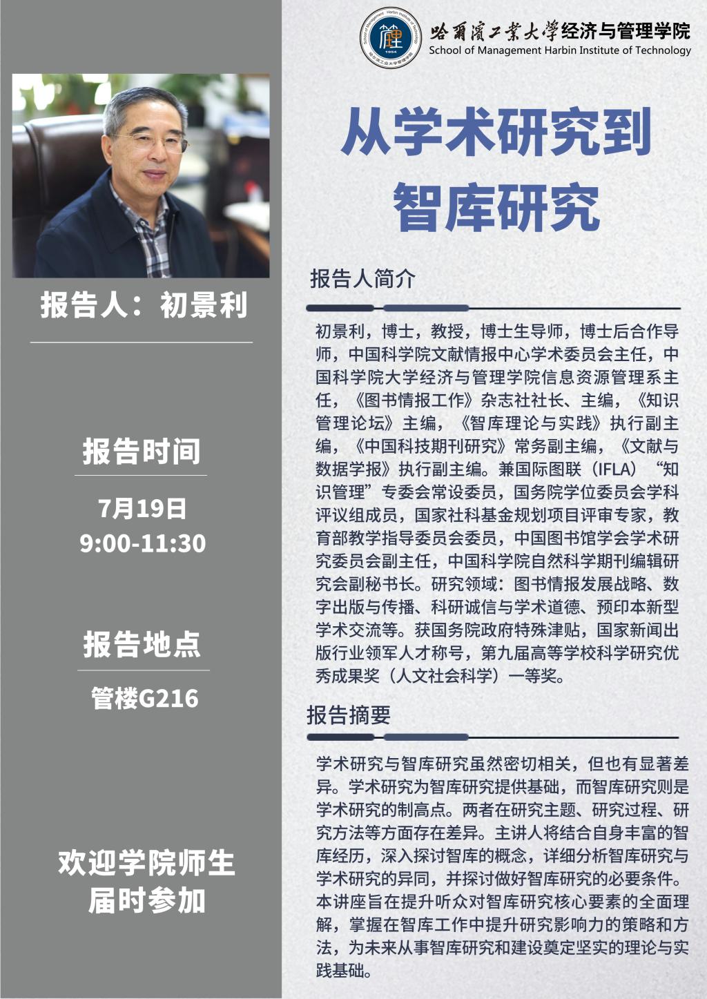 【讲座通知】7月19日中国科体育app 文献情报中心初景利教授讲座通知
