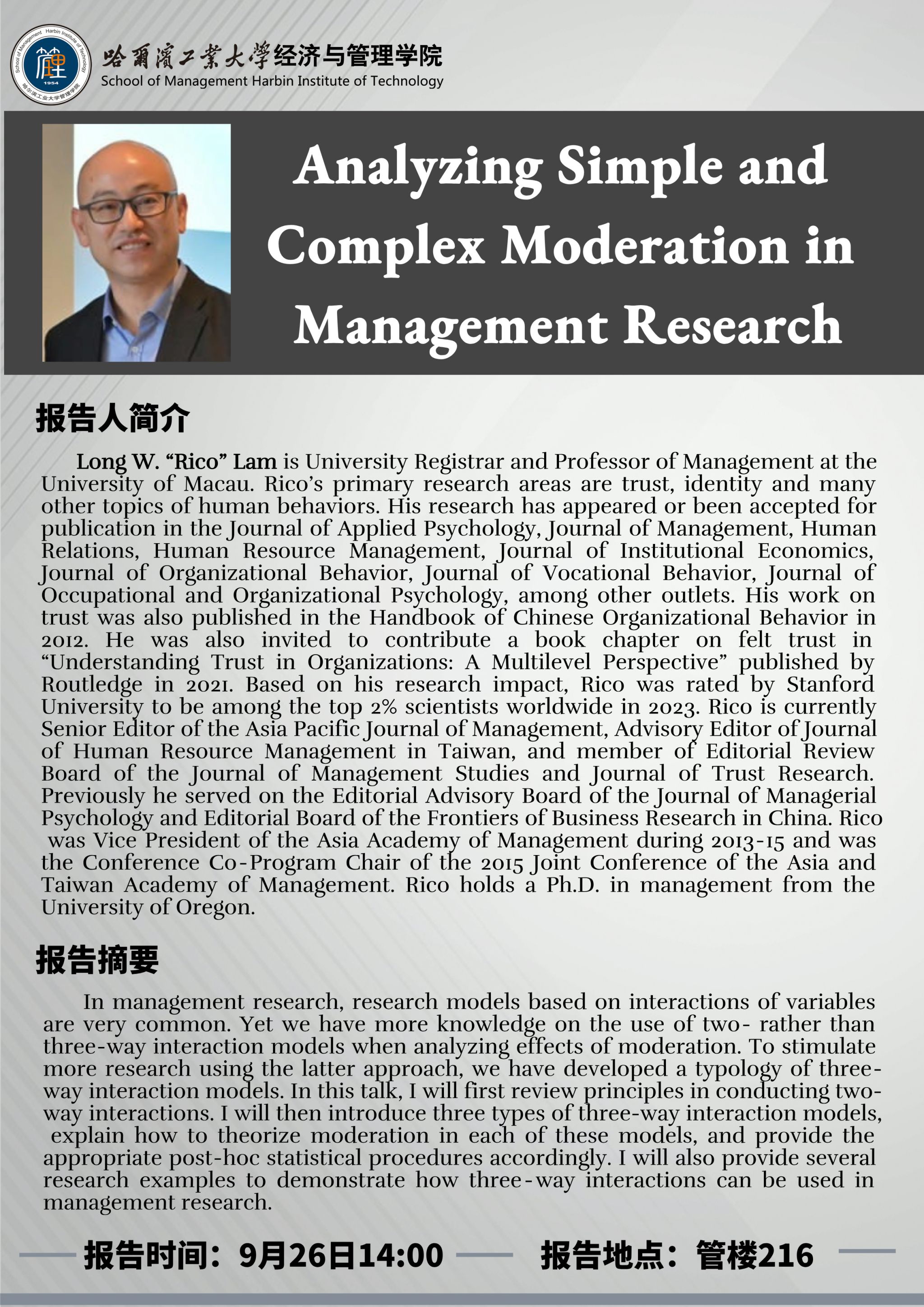 报告题目:Analyzing Simple and Complex Moderation in Management Research
