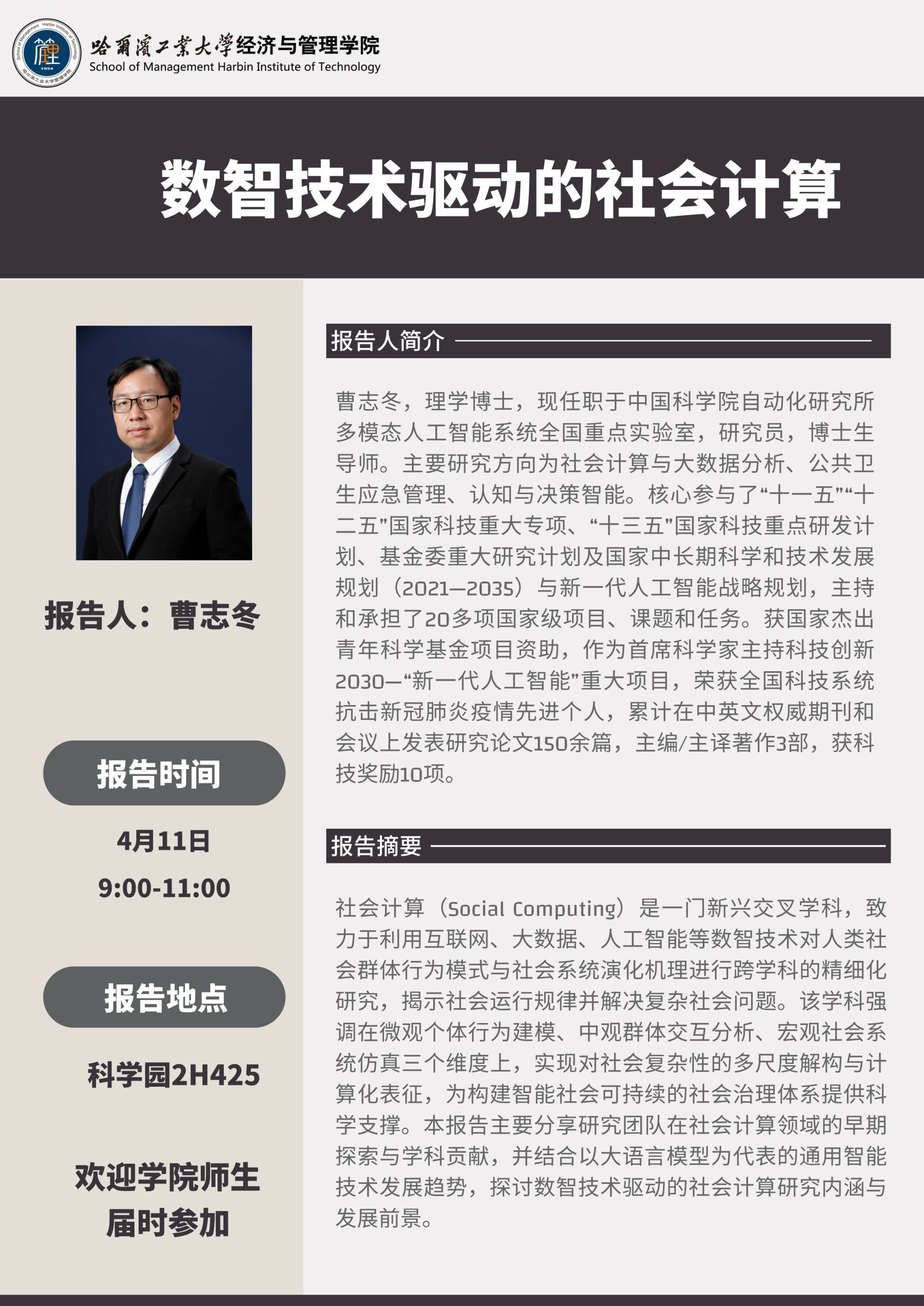 讲座主题:数智技术驱动的社会计算