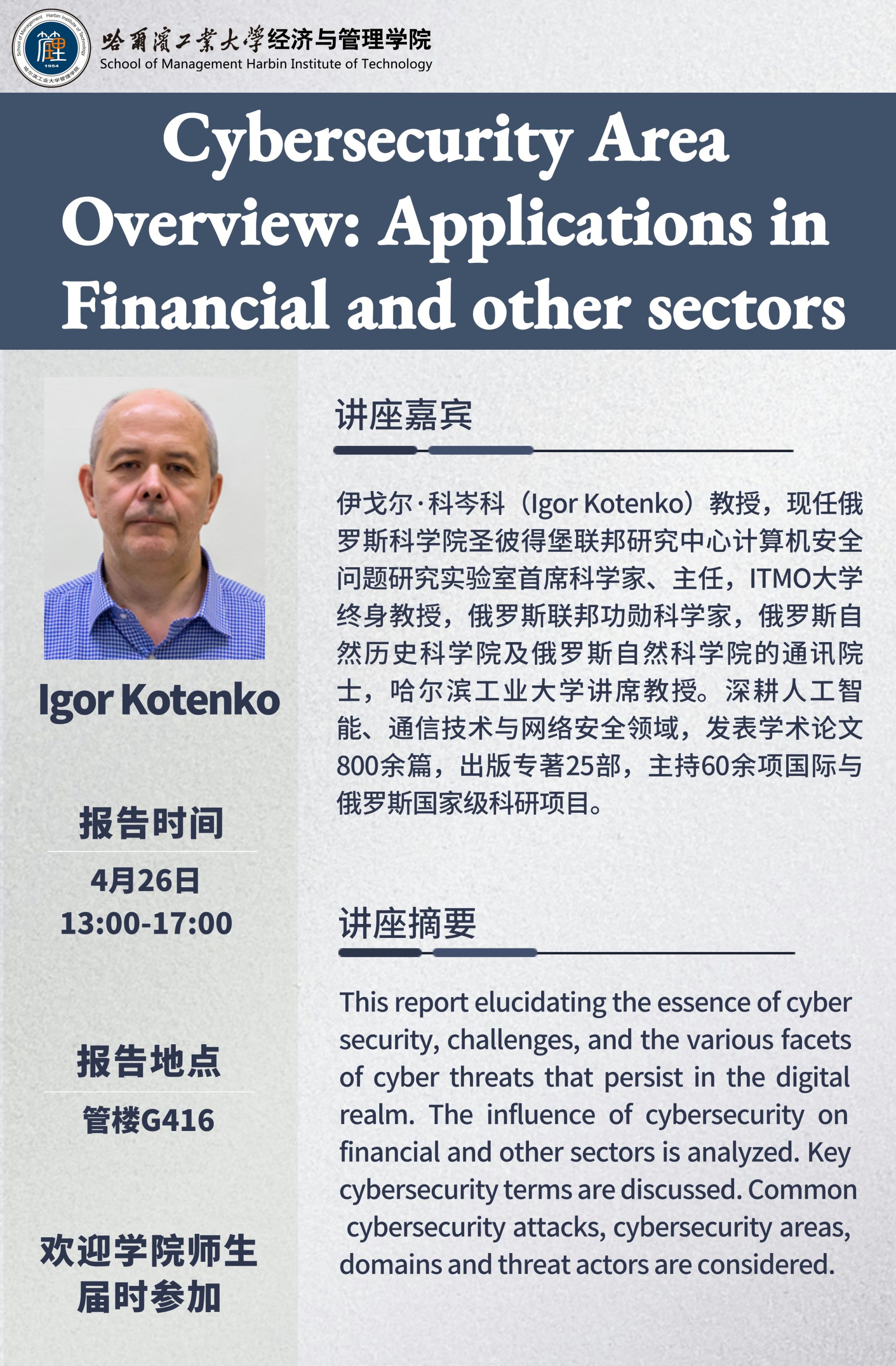 讲座主题:Cybersecurity Area Overview: Applications in Financial and other sectors
