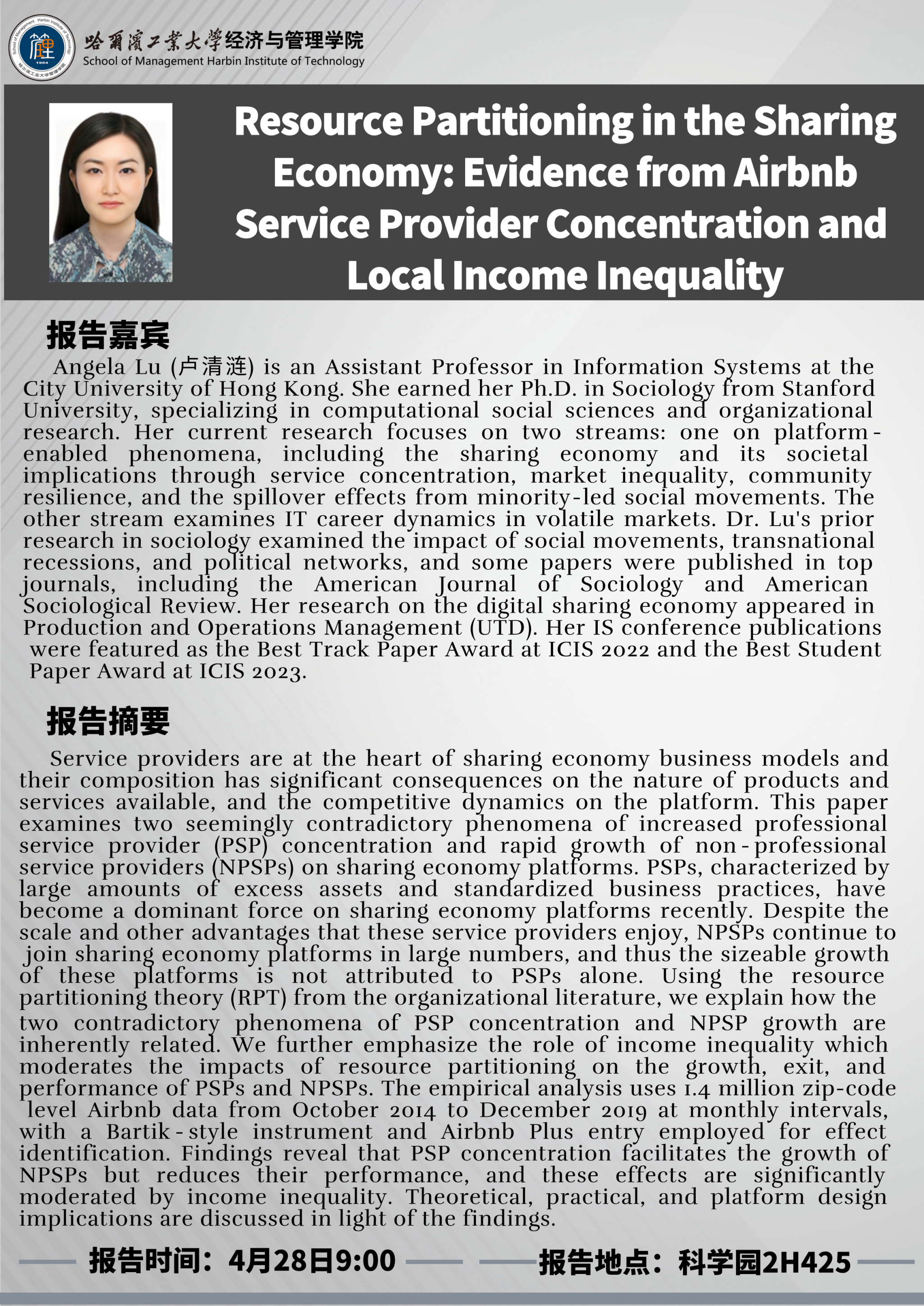 讲座主题:Resource Partitioning in the Sharing Economy: Evidence from Airbnb Service Provider Concentration and Local Income Inequality